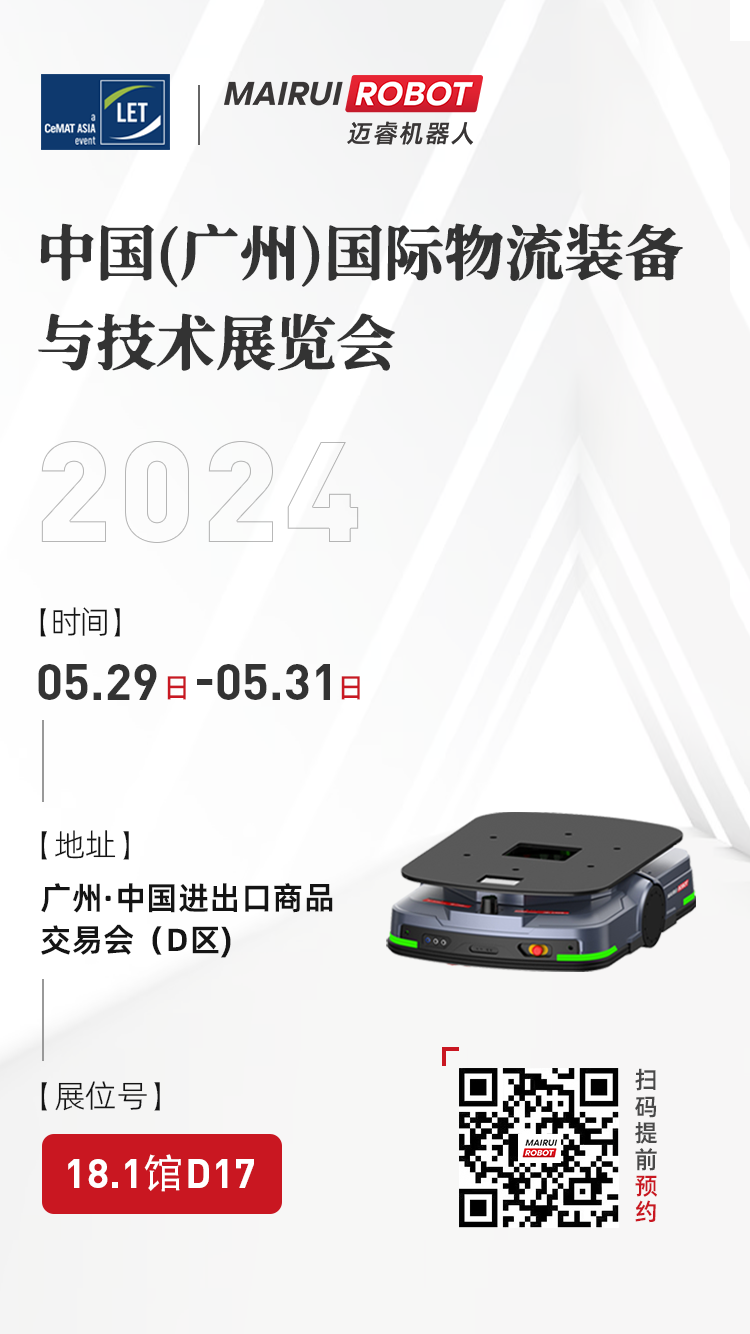 2024年5月29日至31日,华南区域的物流智慧的风向标盛会——2024中国(广州)国际物流装备与技术展览会,将在广州 • 中国进出口商品交易会展馆隆重举行。迈睿机器人邀您于广交馆18.1D17展位相约。我们将携全新一代重载机器人L8,以及迈睿最全的潜伏系列机器人成员与大家见面,为您展示最新的物流智慧。