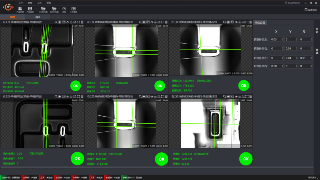 框架软件针对于3C行业定位应用积累了大量组装定位和点胶应用模板,能够兼容多相机、多吸嘴、多拍照位、分离轴和飞拍等各类机构流程,同时框架软件提供定位精度分析排查等自动化问题排查工具,快速定位解决生产问题。