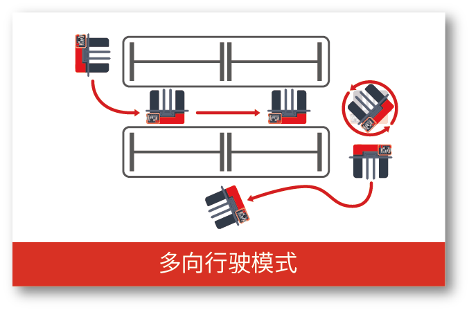 2.具备多种行驶模式,包括直行、侧行、原地回转等功能,可减少整车在巷道内的行驶通道宽度,狭窄空间通过性好,可匹配优化后的仓库布局。
