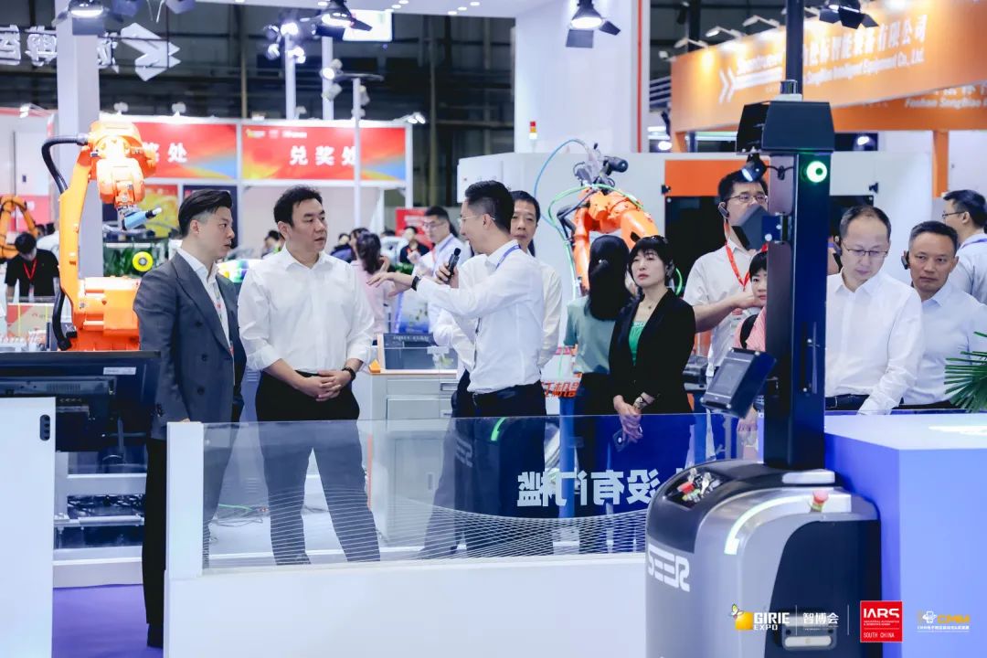 5 月 15 日上午,东莞市委常委、副市长刘光滨一行于展会开幕式前参观了展馆,莅临仙工智能展位考察指导,仙工智能深圳分公司总经理慕楠等陪同参观。