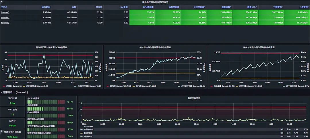 该运维管理平台开放控制台,可集群中的各台服务器资源进行整合、实时的监管,通过可视化图表,全覆盖各种资源指标,帮助快速巡检整体情况。