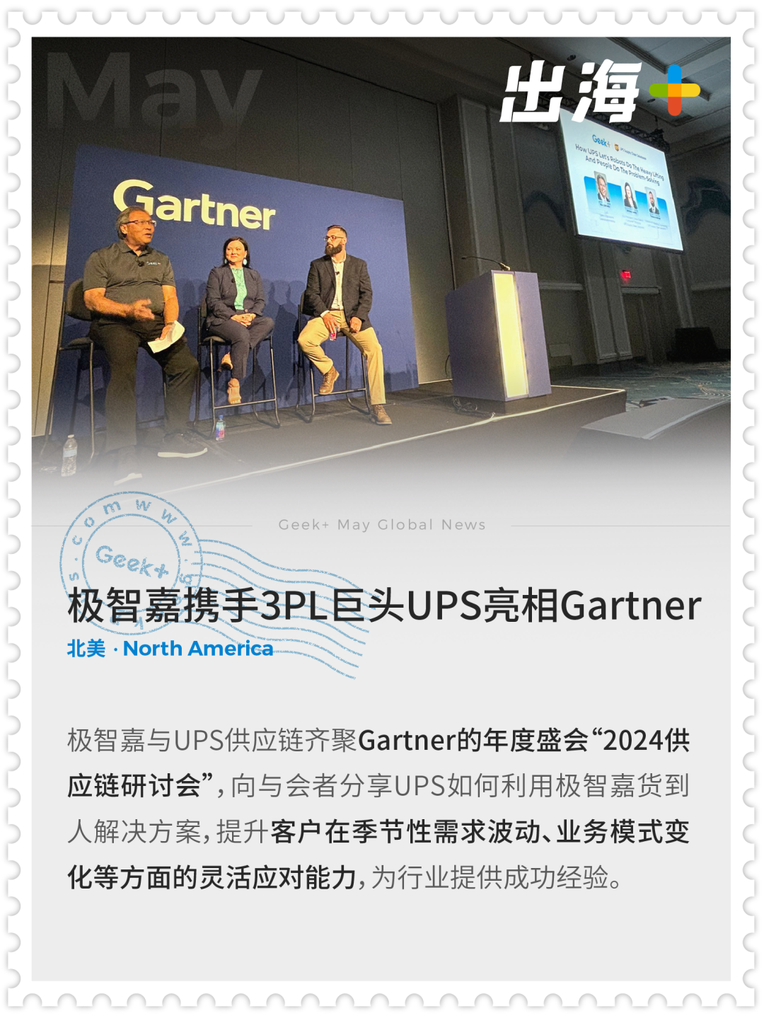 ⭐极智嘉携手美国3PL巨头UPS亮相Gartner的年度盛会“2024供应链研讨会”,分享行业洞见及成功经验。