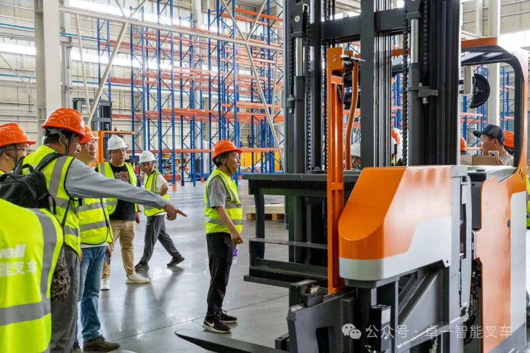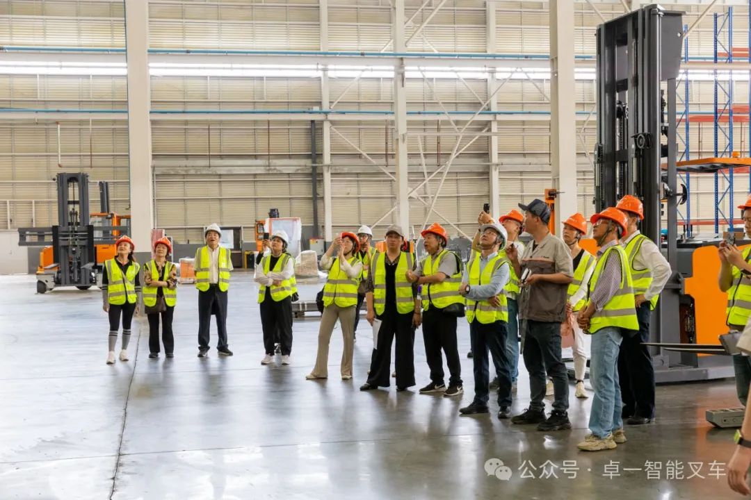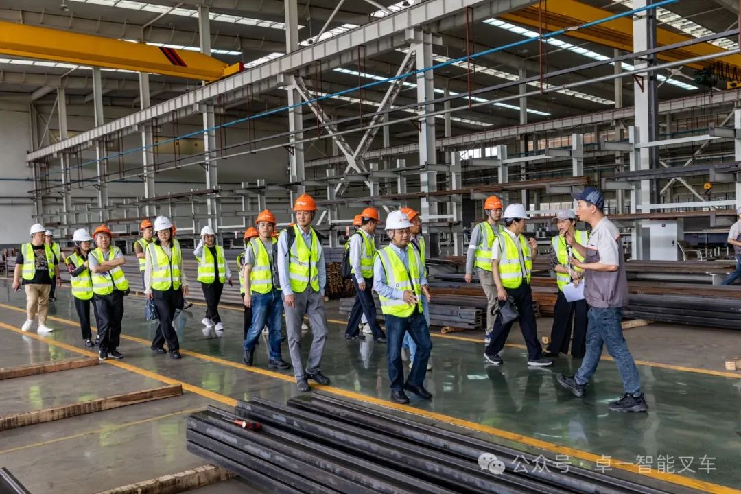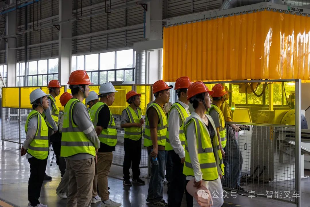 工厂参观期间,卓一智能叉车工程部主管带领客人一边参观新工厂,一边详细介绍已投产新工厂的建设情况和生产规模。