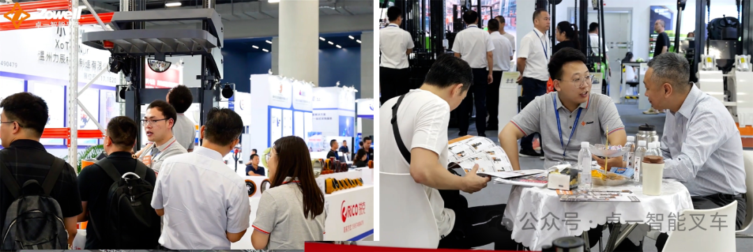 展台分为叉车演示区与会谈区,在叉车演示区,我们的专业团队不断进行起升、下降、堆高等操作演示,同一时间,销售人员也在一旁耐心解答客户疑惑。我们还特地安排了现场试驾,让客户能够亲身感受卓一叉车的操控细节和驾乘舒适度,更加深入的了解产品优势。