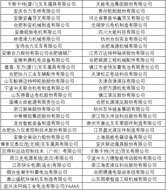 本次大会的顺利举办,得到了国家机器人质量检验检测中心(重庆)、国家特种机器人产品质量监督检验中心(福建) 、同济大学驱动系统创新研究所、广州市物流技术与应用协会、安徽合力股份有限公司、卡斯卡特(厦门)叉车属具有限公司、天能电池集团股份有限公司、广州佛朗斯股份有限公司、合肥海源机械有限公司、凡己科技(苏州)有限公司、广东爱普拉新能源技术股份有限公司、杭州台创实业有限公司、唐山盛航环保机车制造有限公司、杭州鹏成新能源科技有限公司、爱动超越人工智能科技(北京)有限责任公司、合力工业车辆(上海)有限公司、安徽合力股份有限公司合肥铸锻厂、安徽和鼎机电设备有限公司、安庆合力车桥有限公司、蚌埠液力机械有限公司、安庆联动属具股份有限公司、合肥和安机械制造有限公司、安徽安鑫货叉有限公司、宝鸡合力叉车有限公司、安徽皖新电机有限公司等公司的大力支持,感谢以上单位的大力支持。