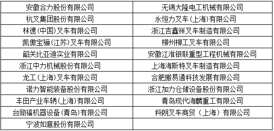 中国叉车品牌20强