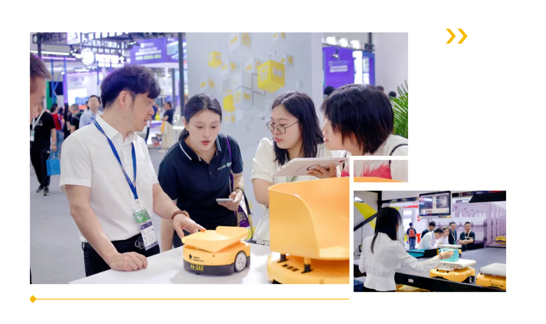 展会一开场,立镖机器人的“小黄人”便吸引了众多观众的眼球,他们纷纷驻足围观,惊叹于这些智能机器人的高效与精准。展商们纷纷上前咨询,深入了解立镖机器人的技术细节和应用场景,并亲自体验分拣系统,现场感受智能分拣的魅力与乐趣。