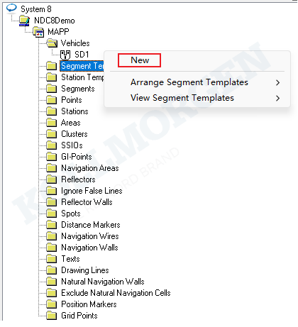 1、与路径模版功能类似,为了方便站点的分类管理和属性统一设置,用户可以创建站点模版以减少大量重复操作。通过右键点击界面左边的Segment Templates,选择New,Home Template表示待命点模板,Group Activity Template表示群组站点模板,Activity Template表示单独站点模板。