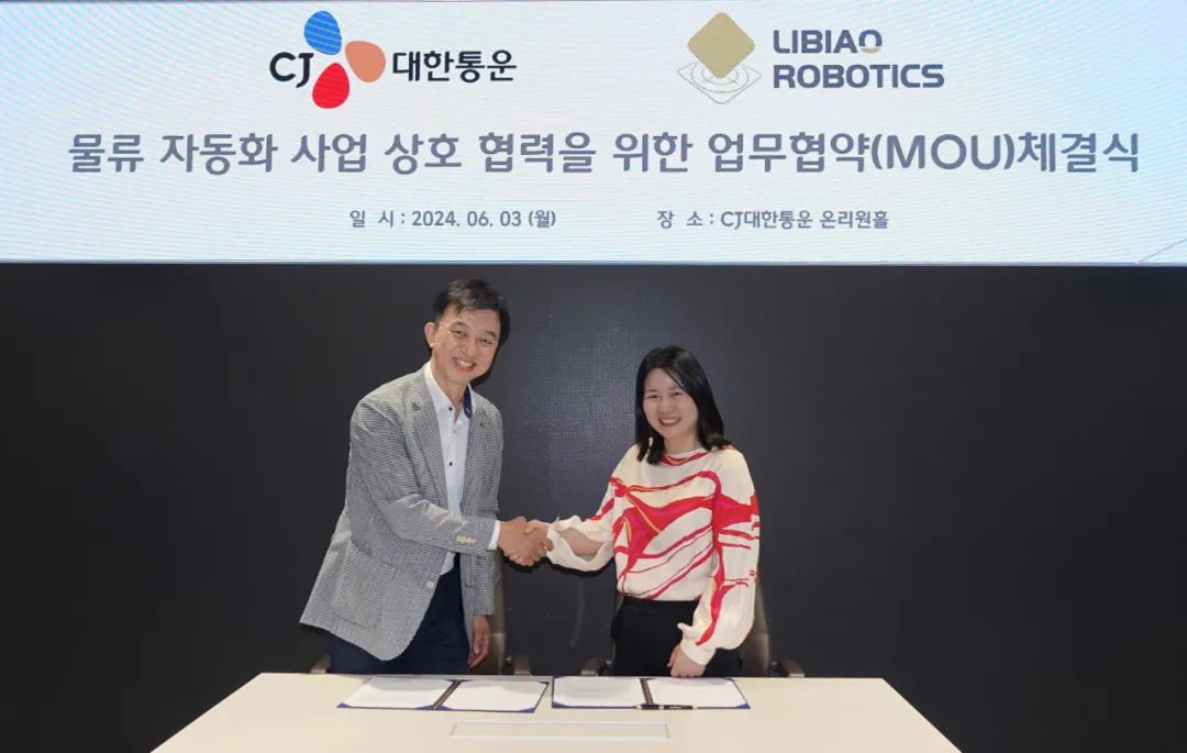 2024年6月3日,立镖机器人与CJ物流在韩国首尔成功签署战略合作伙伴协议,建立长期合作关系。立镖机器人首席执行官夏慧玲、CJ物流TES物流技术研究所所长Kim Kyung-hoon以及双方各自的团队出席了签字仪式。