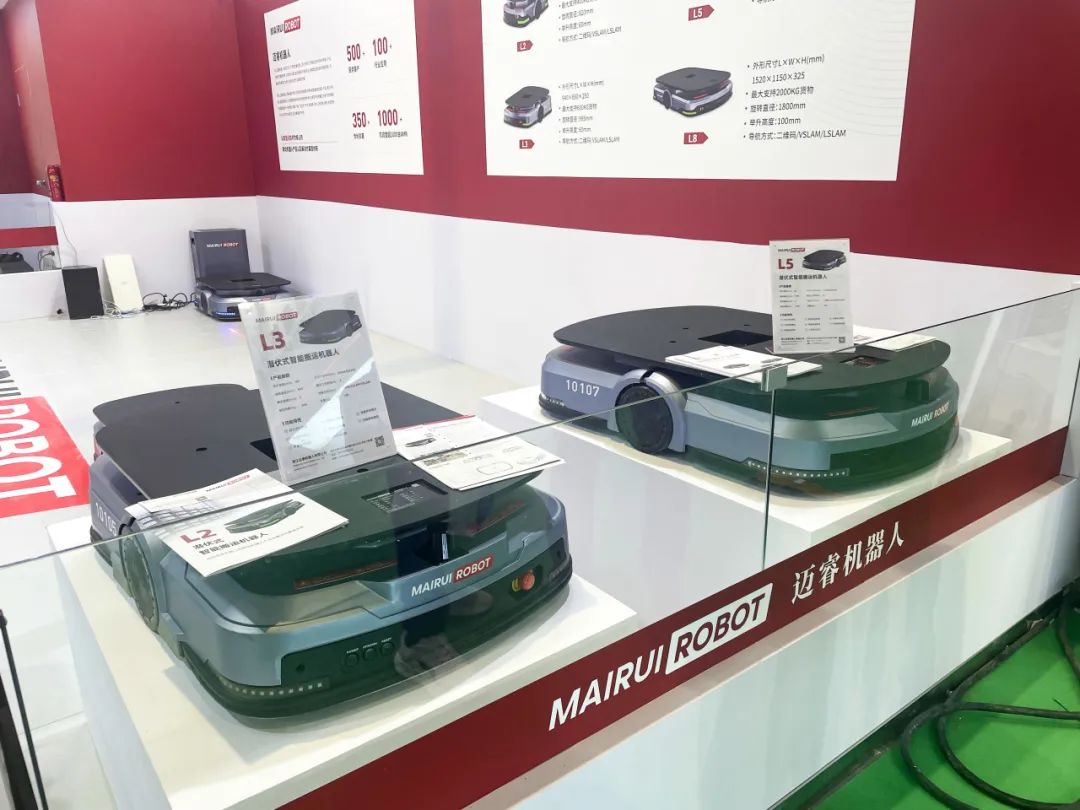 迈睿机器人L3进行了3车负载协同搬运,轻松实现直顶货物搬运及普通货架搬运,展示机器人搬运高效作业。其高效灵活更是吸引了大量现场观众驻足咨询。迈睿机器人的产品均可实现二维码&激光SLAM&纹理导航技术,真正实现物流搬运自动化与无人化。