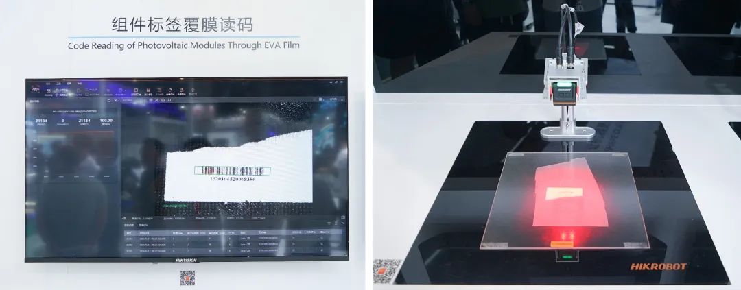 该环节还展示了覆膜码读取方案、叠焊检测方案、光伏接线盒抓取方案。