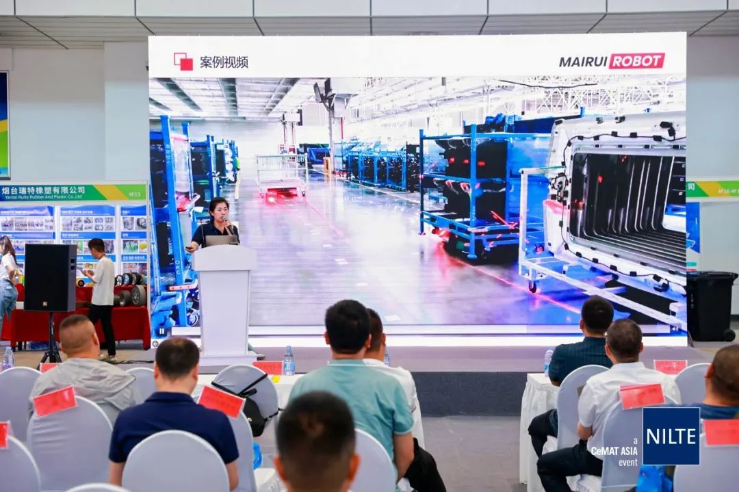 19日上午,迈睿机器人华北区销售总监刘新霞女士在[物流创新创业论坛]上发表了【迈睿智能搬运,助力高端装备智造未来】主题演讲,刘新霞女士基于迈睿移动机器人的行业解决方案和成功项目经验,与参会观众阐述如何利用智慧物流优化制造业,提高高端设备制造的效率和稳定性。并共同探讨人工智能的快速发展将如何影响制造业发展,以及物流机器人、物流自动化设备和方案如何助力当前高端装备制造业的优化升级。