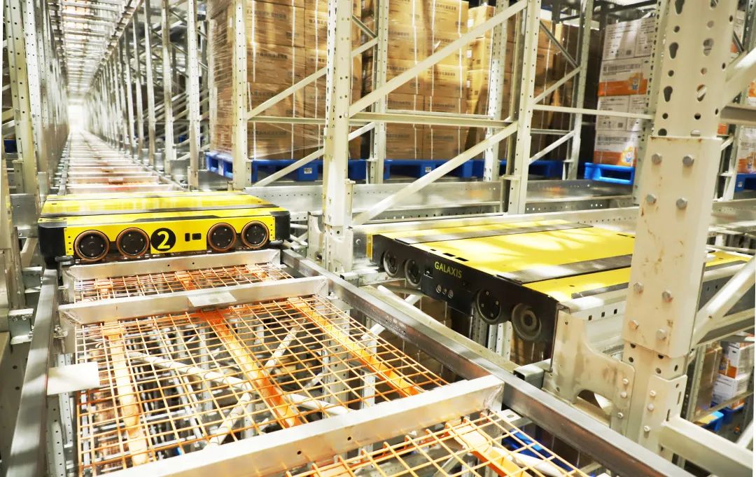 项目引入托盘密集存取系统,规划7680个托盘货位,设计10台四向托盘穿梭车配合4台提升机,复合循环作业峰值效率最大约115~120托/小时,完全满足企业目前业务需求,同时也为未来发展预留了空间。