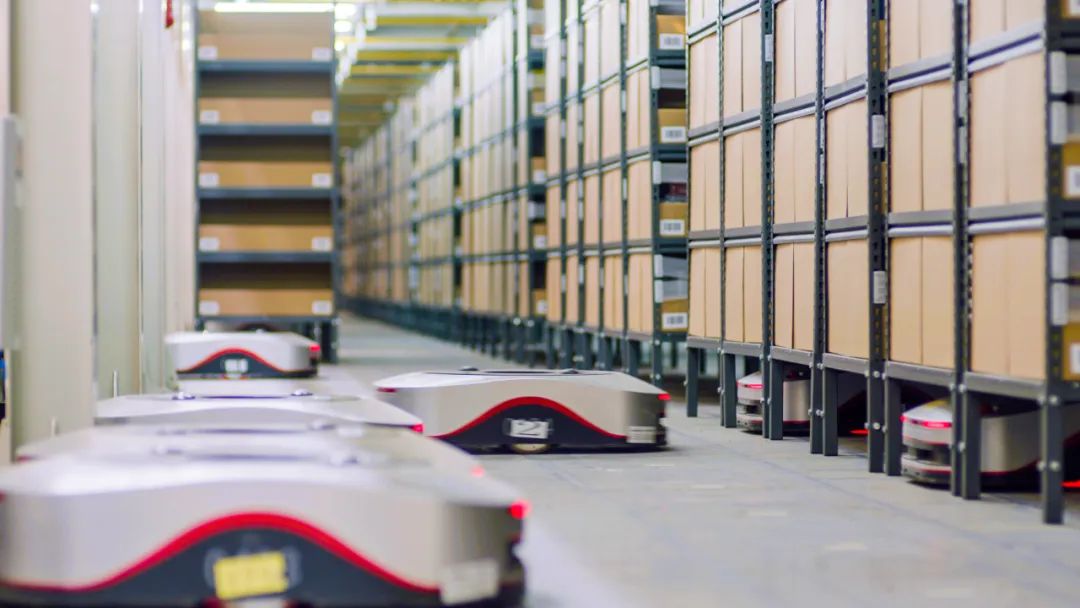 △地狼机器人在仓内智能搬运货架