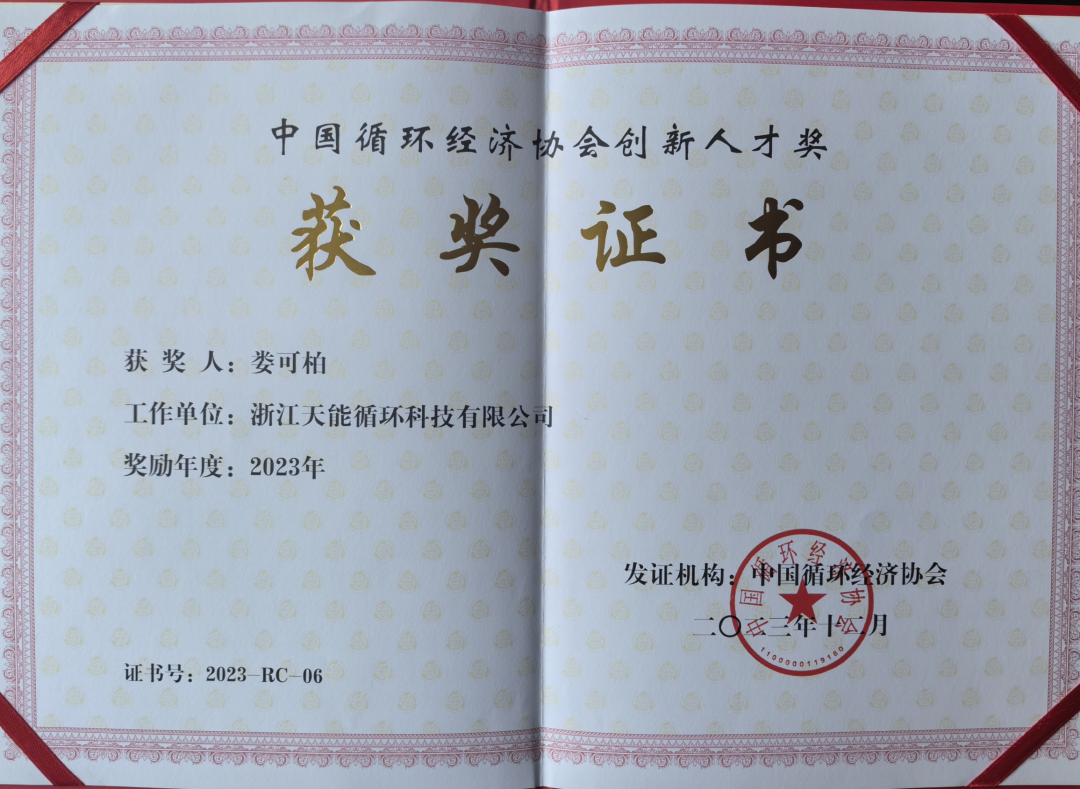荣获中国循环经济创新人才奖