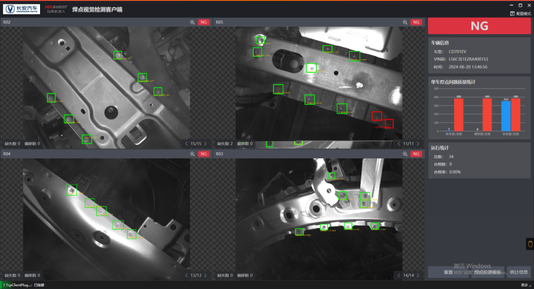 通过面阵相机+深度学习算法,对白车身以及相关焊接件进行焊点质量检测,完成焊点有无检测、焊点偏移检测、焊点缺陷检测,如飞溅、毛刺、边焊、重焊、焊穿等缺陷可高效精准的检测。