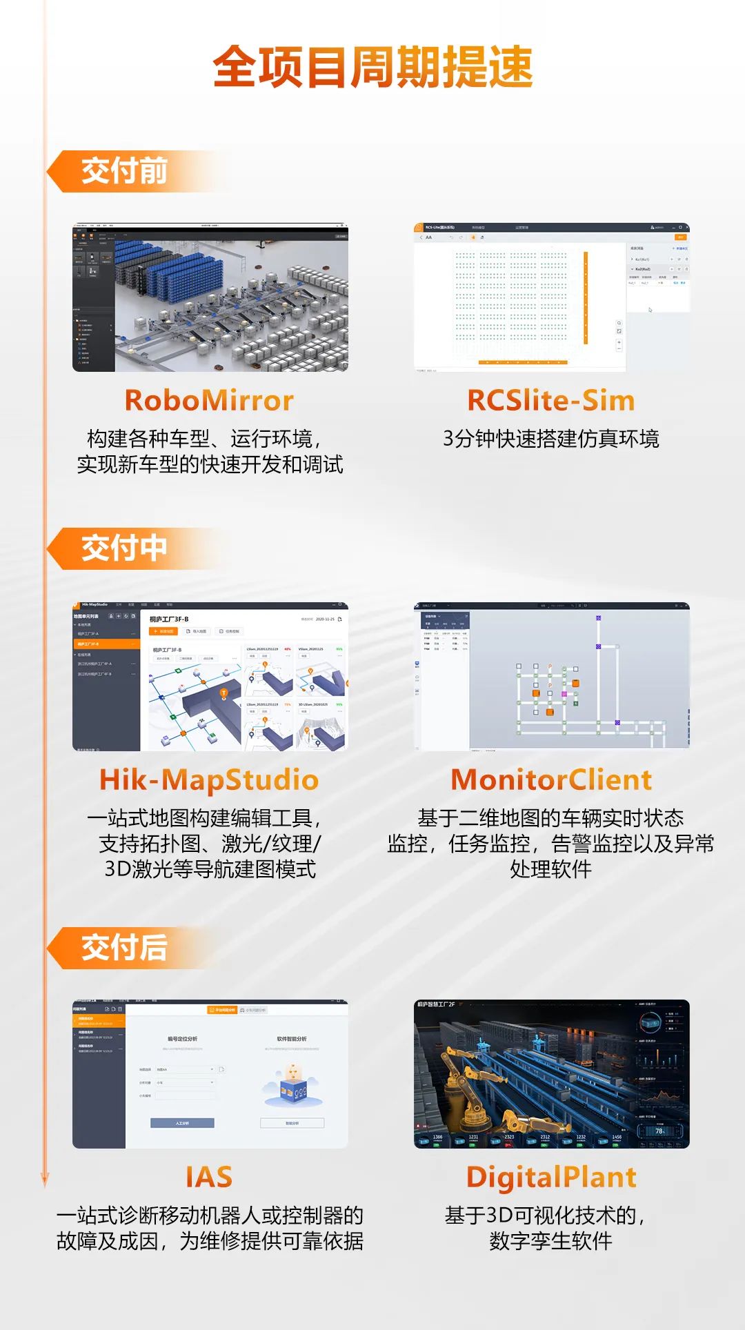 海康机器人为行业用户提供端到端的解决方案和交付服务,在项目组织、项目过程管理、现场管理、风险管控等方面都已经构建成熟支撑体系。