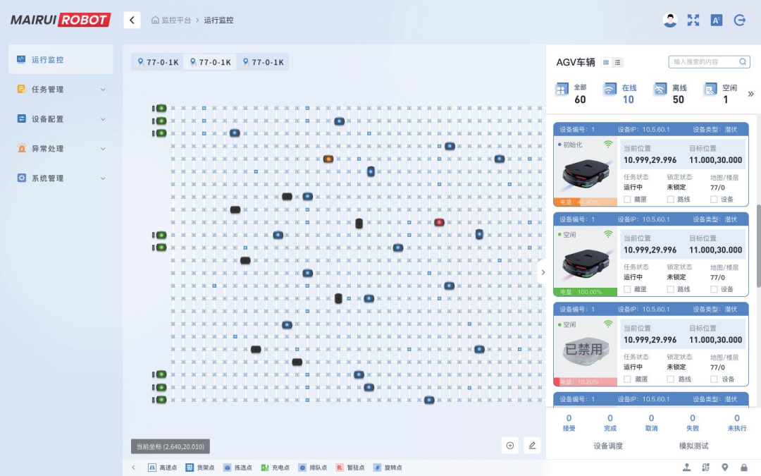 除了展示各种硬件产品外,本次AMTS还展示了迈睿自主研发的软硬件一体化系统。迈睿机器人软硬件一体化平台,可以适应各种复杂物流场景需求,基于迈睿核心算法再到上层系统,提供全面解决方案,实现场内各环节自动化与高效运营,助推汽车制造业转型升级。
