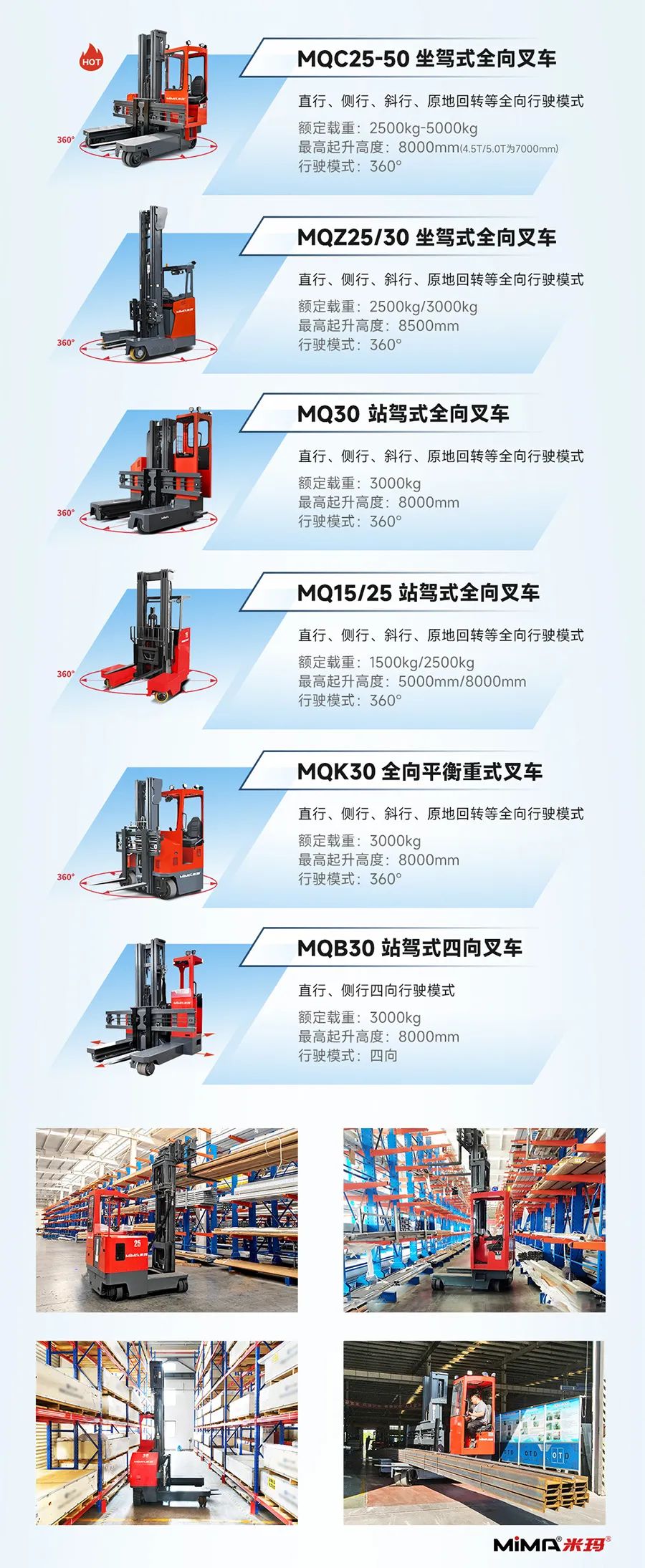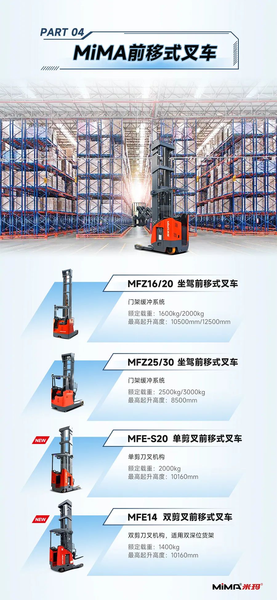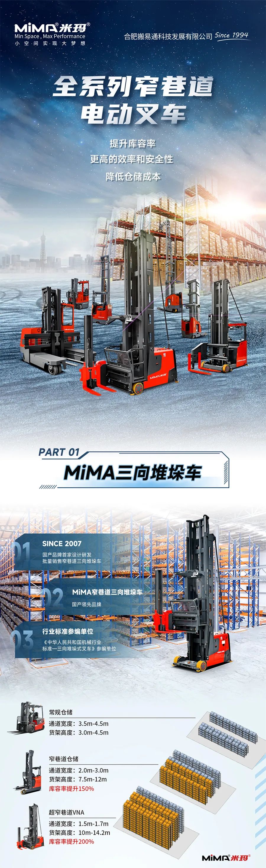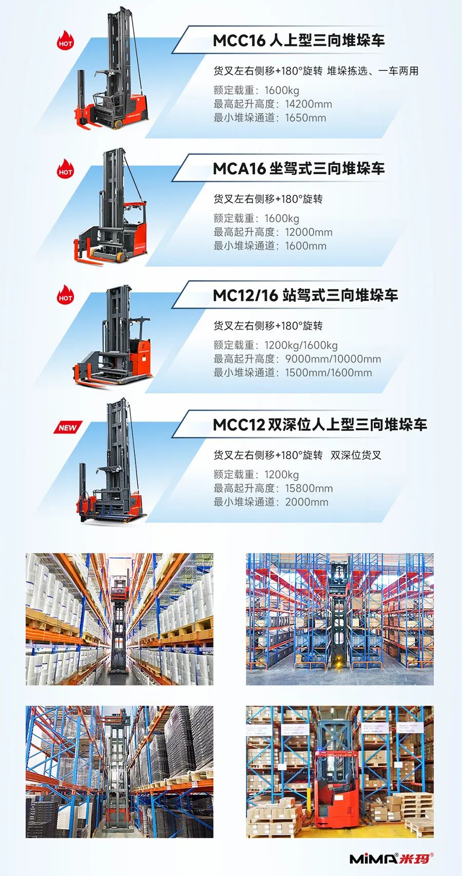 合肥搬易通MiMA米玛|全系列窄巷道电动叉车产品矩阵