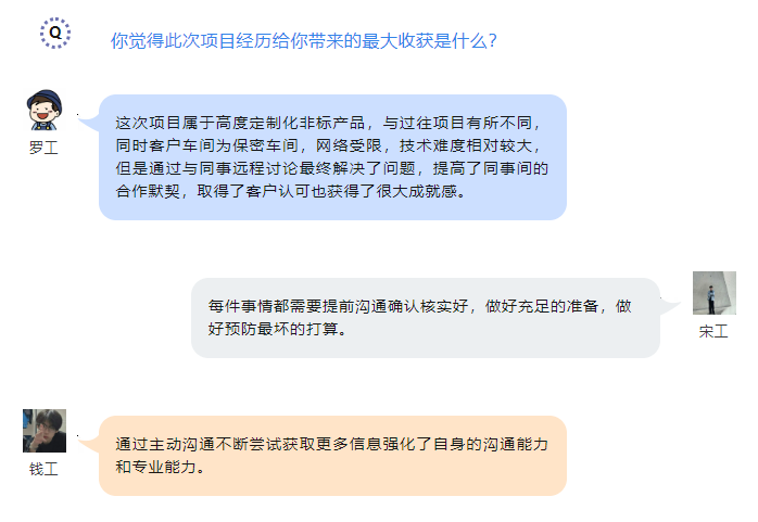 钱工:刚接到项目任务有点兴奋,但冷静下来又有点担心,因为目的地国家与国内有5个小时的时差,担心这个时差会导致与国内技术部门沟通不及时而延误工期,不过好在同事们都很给力,需求和问题都及时反馈并解决,并且每天线上会议一起复盘。