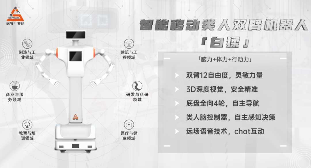 身为智能时代下的新型劳动力,飒智智能移动类人双臂机器人高度智能化,进行多技术融合、多功能模块、多场景适配、多空间拓展,24小时待命,未来,飒智智能将不断把这位机器人家族新成员、“新物种”放置到场景中锻炼,通过动作捕捉、模仿学习、动素库积累等方式,让它自主学习、智慧执行、覆盖更大空间、完成更多复杂类人作业任务,以高性价比的“类人”,转化为高效的生产力,让高技术能快速、稳定地落地应用,为智能机器人在当下进入千行百业,开辟了一条低门槛的现实通道,赋能各行业新的增长空间。