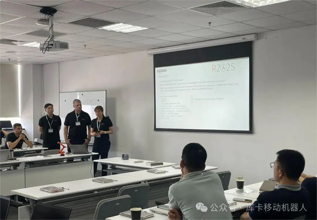 库卡移动机器人营销中心总监李祥铭Simon Li、海外客户经理顾玮Edward Gu对移动机器人的全系列硬件产品、软件平台、行业应用、成功案例及技术服务等做了全方位的分享和介绍,让北京奔驰各位参会同仁对库卡的移动机器人产品系列有了更全面、更详细的了解。
