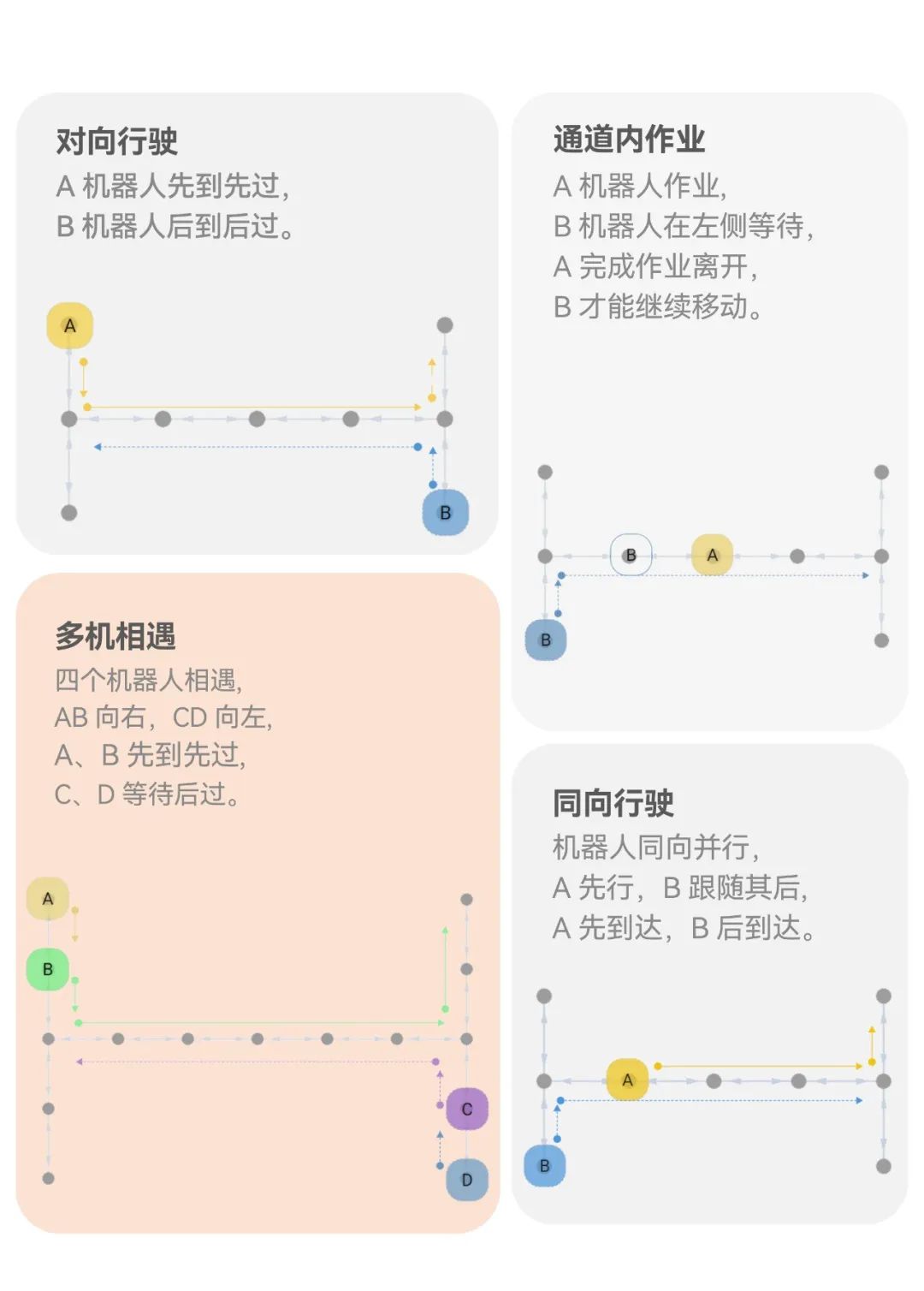 双向通道容易拥堵,影响机器人作业,
