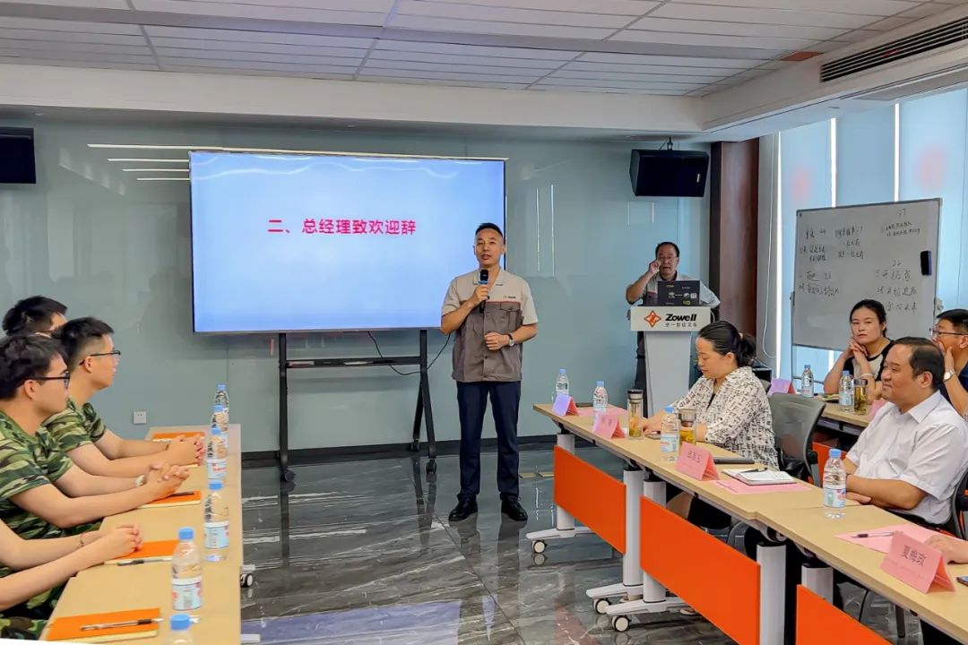 从品牌诞生到苏州自建工厂,再到如今占地5万多平方的安徽新工厂投用,历经17载,卓一不断发展壮大,产品已出口至100多个国家和地区,海外仓的筹建也提上日程。多年来,卓一始终谨记“在一厘米宽的赛道做到一公里深”,深度聚焦窄巷道细分赛道,投入大量人财物进行研发制造,掌握了多项核心技术,在产品、技术、管理、品牌领域构建了差异化竞争优势,为现代化智能仓储提供了更多可能。如今安徽新工厂步入正轨,卓一智能叉车的研发能力、产能规模迈上新的台阶,将为企业人才施展才能、实现自我价值和社会价值提供更加广阔的发展平台。潘总还结合自身在叉车行业三十多年的奋斗历程,强调了在基层学习和勤勉奋斗的意义,希望在座的每一位应届生,都能尽快明确自己的职业目标,在充满机遇的物流装备行业、在卓一,实现自己的人生理想!