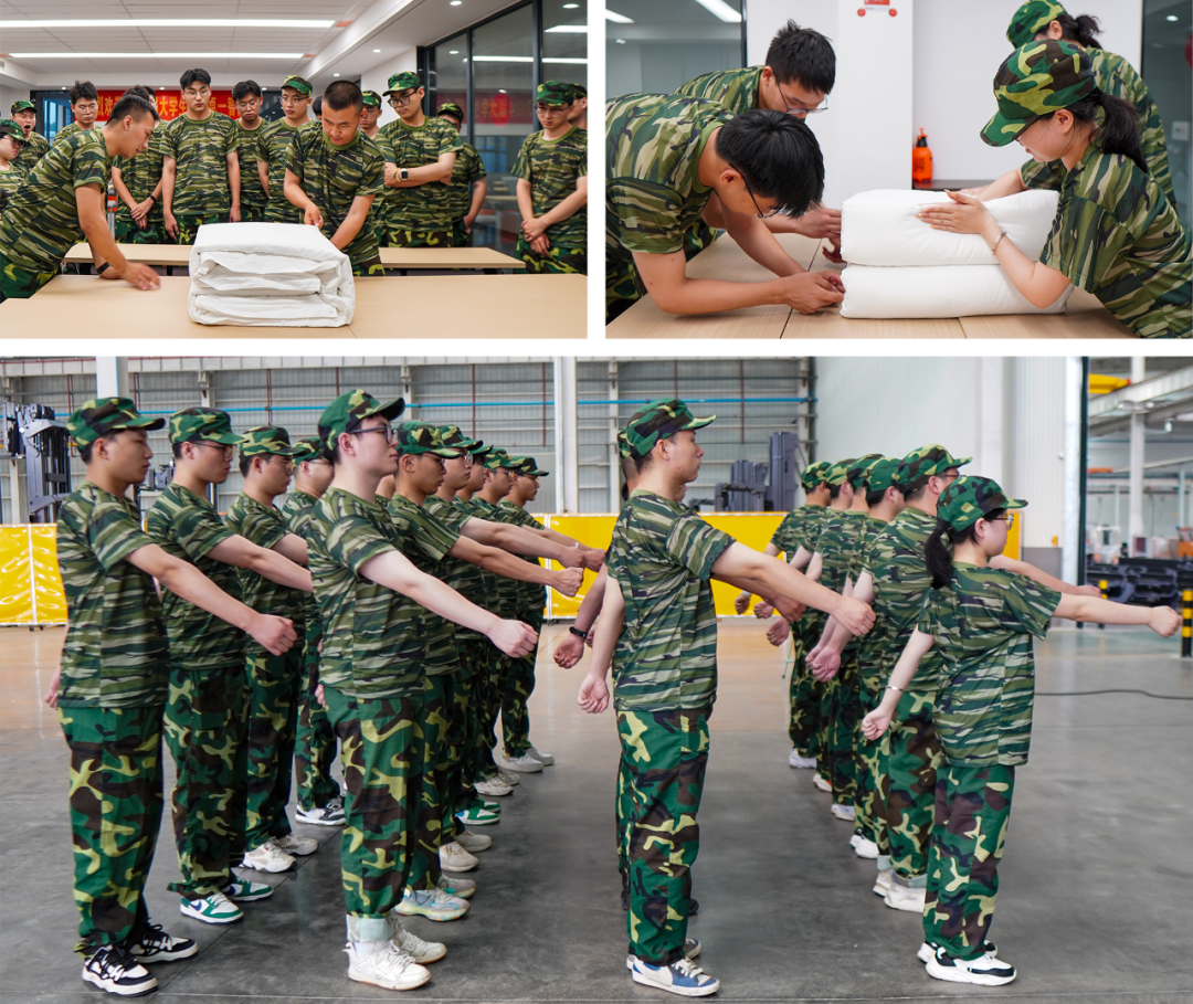 “立正、稍息、齐步走!”新知识员工们一丝不苟的完成教官铿锵有力的指令,叠“豆腐块”、踢正步、列队训练也毫不松懈,即便挥汗如雨,一招一式大家也都铭记于心。