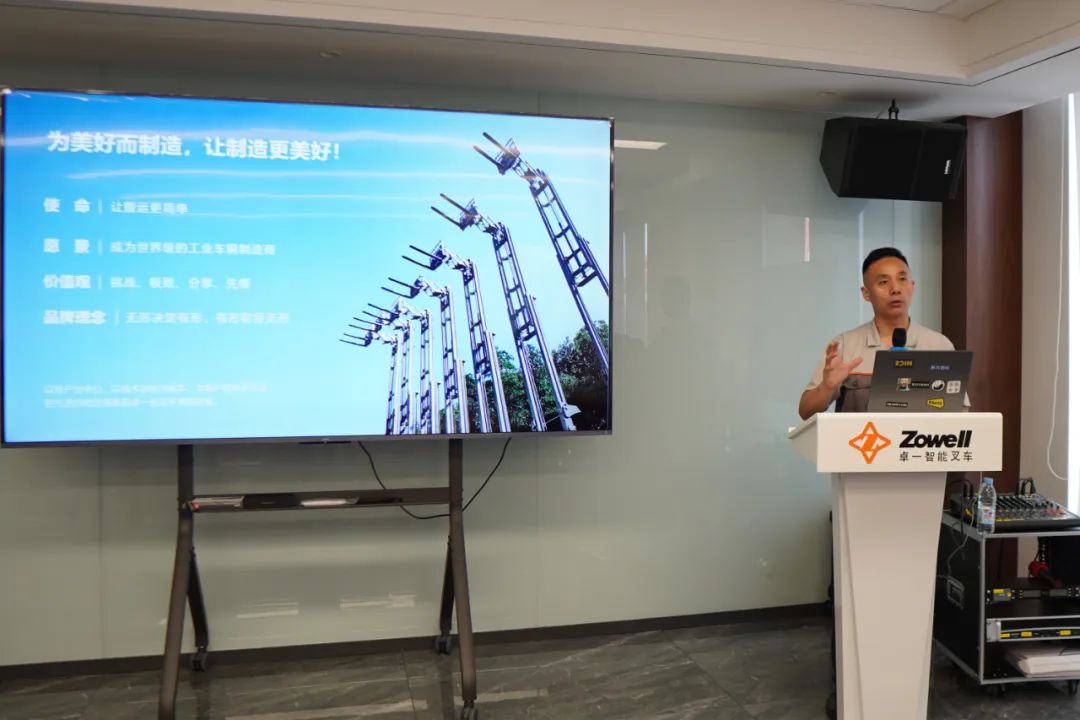 在入职培训的最后环节,卓一智能叉车总经理为新知识员工介绍卓一智能叉车的企业发展历程以及未来的发展战略规划。