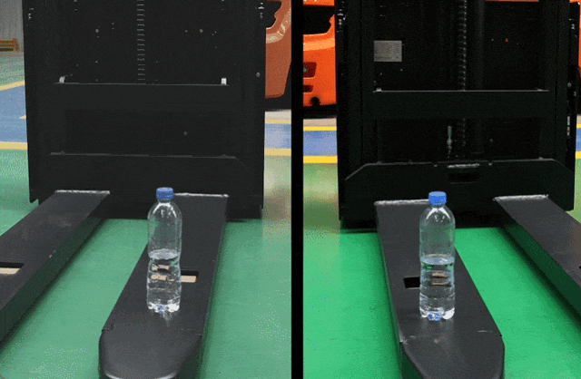 ▲ 右为天罡堆垛车起升软启动,明显更平稳