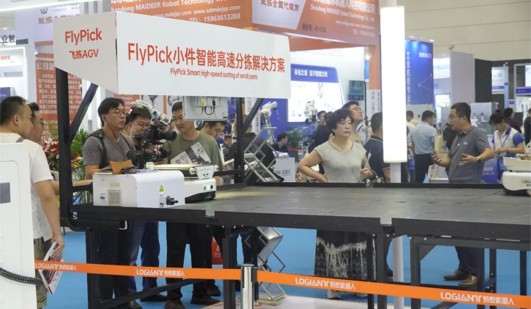 展会现场,飞拣机器人及高速智能分拣系统凭借其卓越的性能吸引了大量参观者的目光,占地面积小,高效率低耗能智能分拣,集高柔性、高回报、高效率、快交付、省空间优势于一体,可应用于SKU种类多、存储量大、时效性强的应用场景。