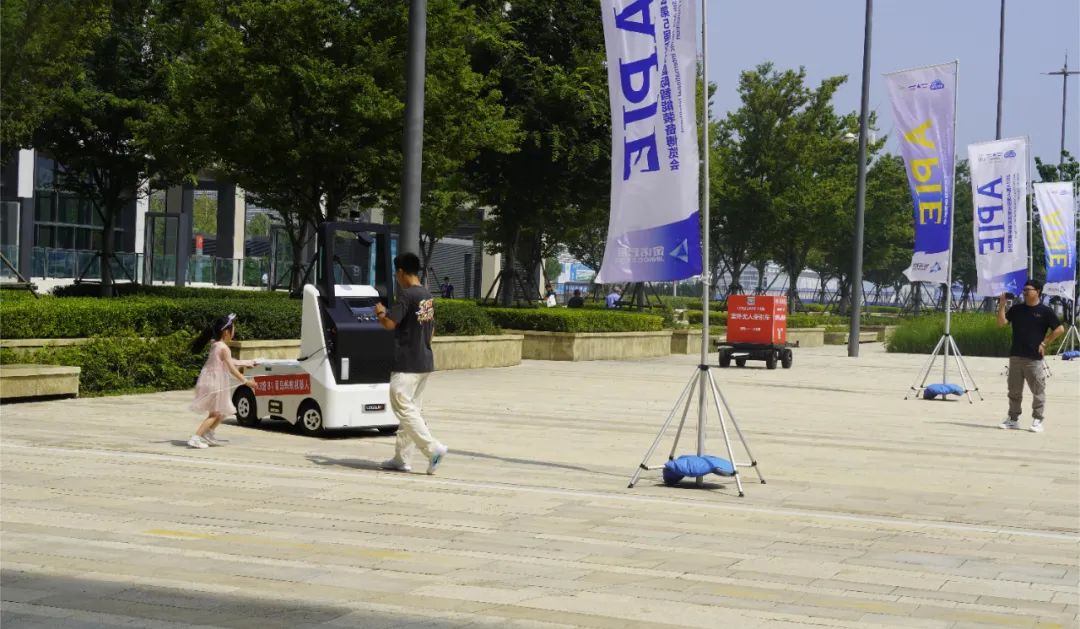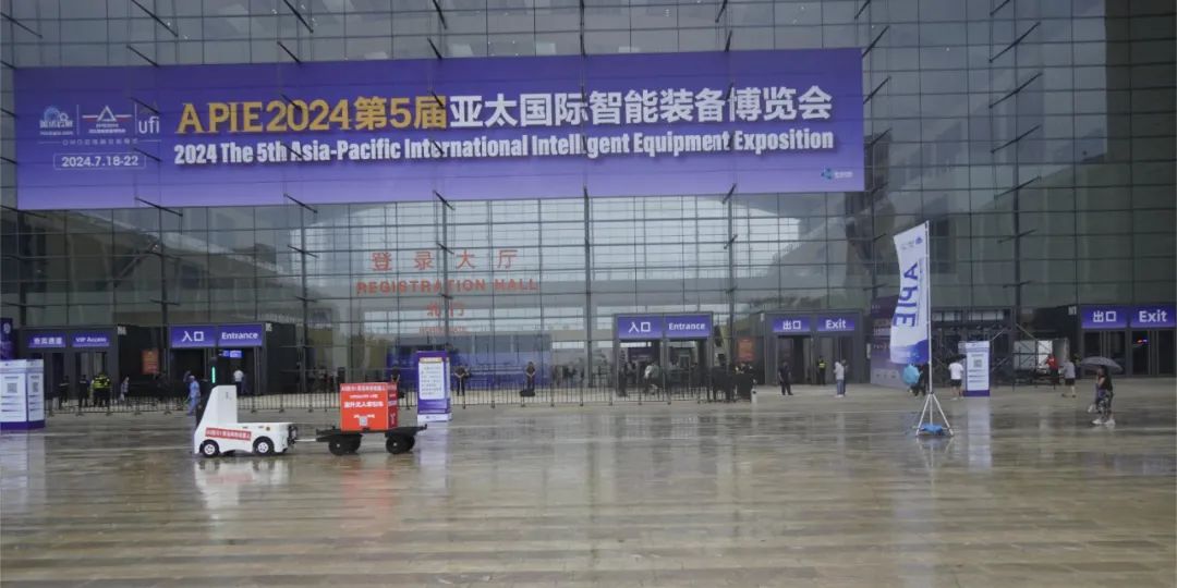 展会第三天恰逢雨天路考,蚂蚁机器人无人牵引车如常在室外展示,无惧雨水,可适应室外雨雪雾低温等多种复杂环境,灵活处理各种突发状况,无需对环境进行改造,突破室内、半室外和室外的混合场景限制,自主完成物料转运,具备短项目交付周期,低维护成本、高精准定位导航和高安全性等特点。