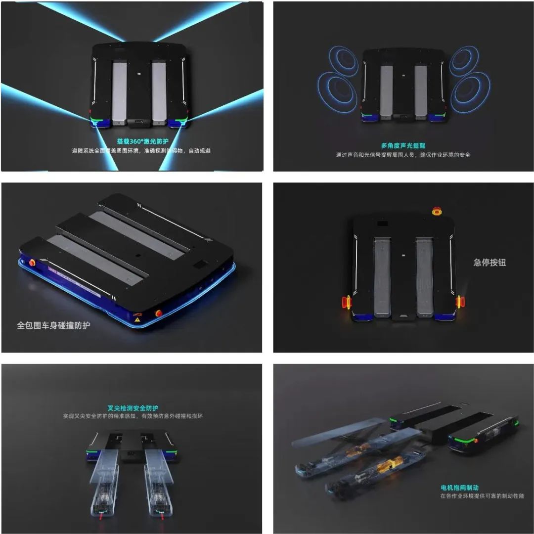 新一代机器人全面技术革新,产品已获得CE全指令集2023最新标准,额定速度高达2米/秒,取放货物仅需30秒以内,效率翻倍,让时间成为您的盟友。防水等级跃升至3级,安全防护系统再上一层楼,保障设备在复杂环境中稳健运行。