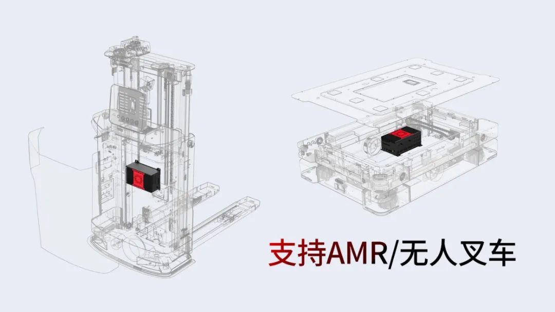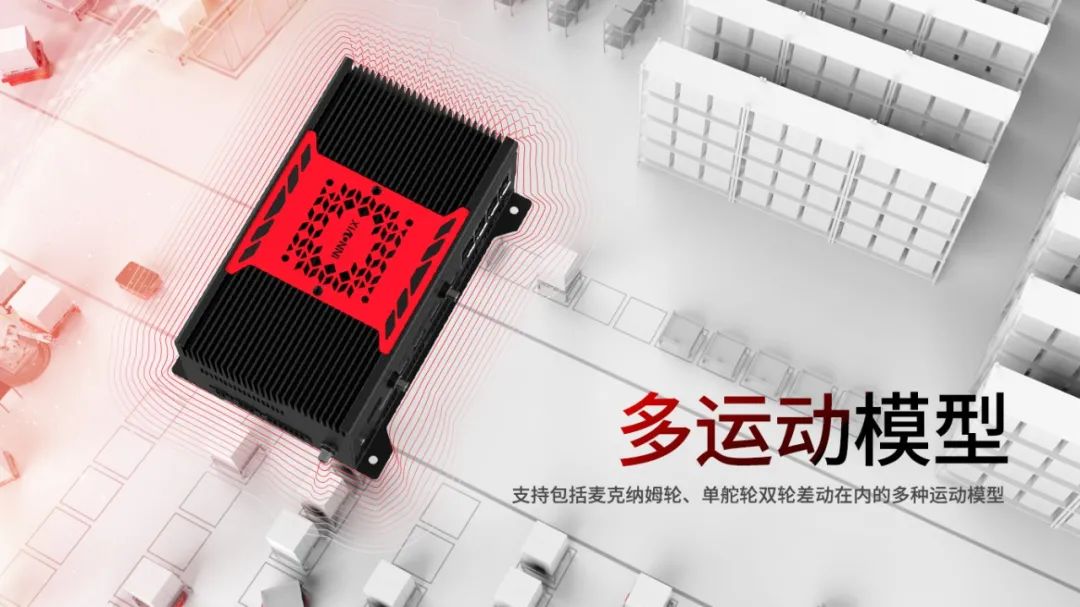 搭载该控制器的AMR/无人叉车,具备校准托盘和料架识别功能,支持包括麦克纳姆轮、单舵轮、双轮差动在内的多种运动模型,确保机器人在复杂环境中的精准操作和可靠性。