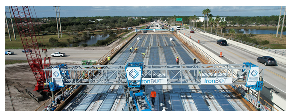 在IronBOT的首个项目中,这款机器人与TyBOT在佛罗里达州圣露西港西大道桥(Port St. Lucie West Boulevard Bridge)合作,显著缩短了施工时间。原计划14天完成的钢筋安装任务,在使用这两款机器人后仅用7天就完成了。IronBOT在项目中放置了147,032磅(约66,692.5公斤)的钢筋,而TyBOT则完成了58,068次捆扎。通过与承包商Shelby Erectors的合作,这一试点项目展示了机器人在建筑施工中的巨大潜力和效率提升。