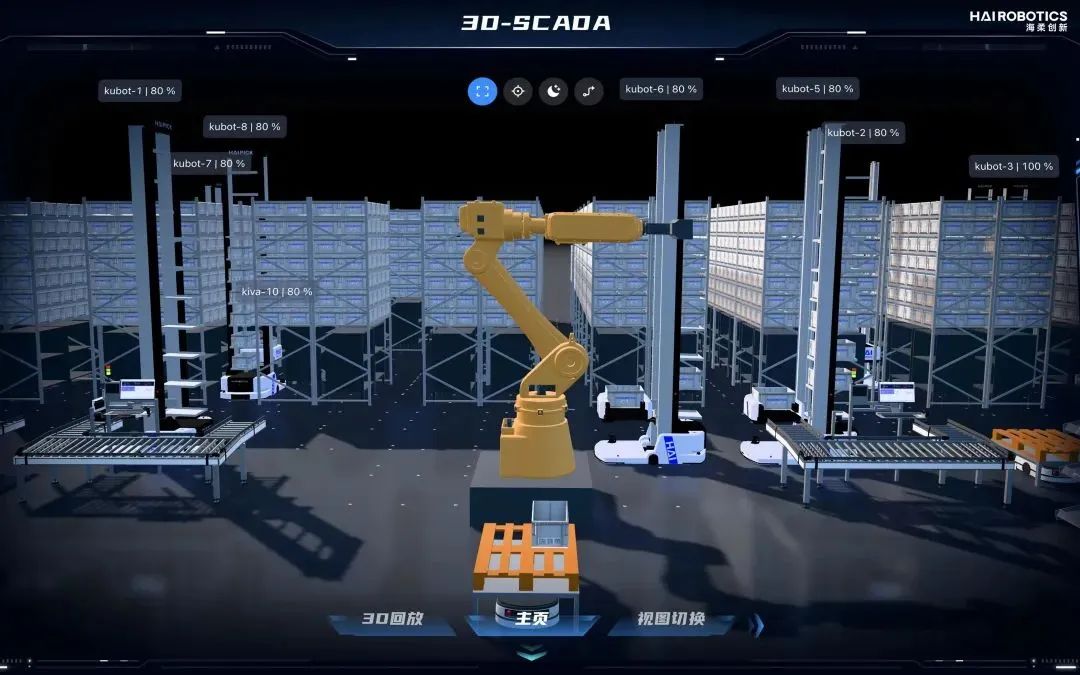 借助海柔数字孪生平台,客户可实现3D远程巡检,减少运维人员进入机器人工作区的次数。运维人员只需轻松点击屏幕按钮,便可多角度切换监控视角,一键查看某台机器人停止工作的原因、某个装有热销品的料箱是否被放在合适的库位等。