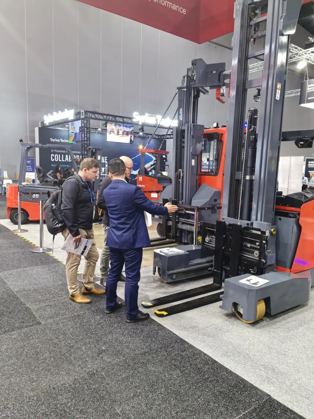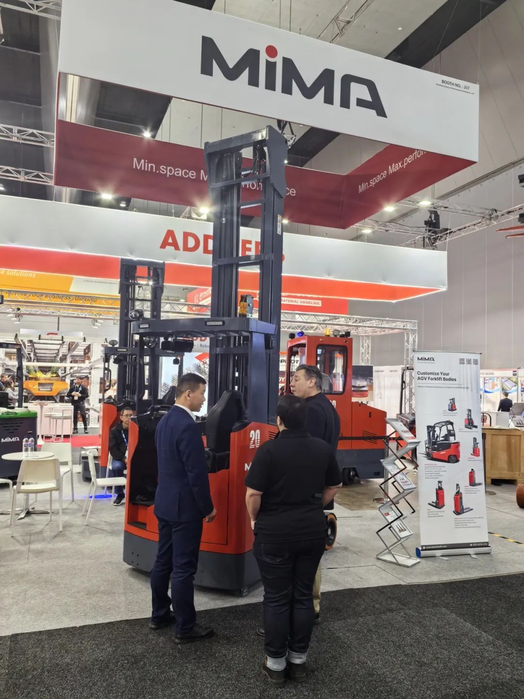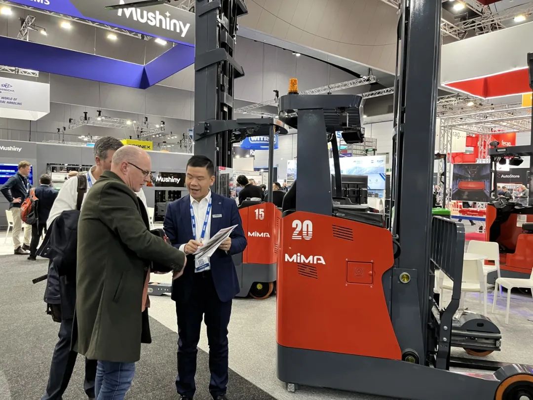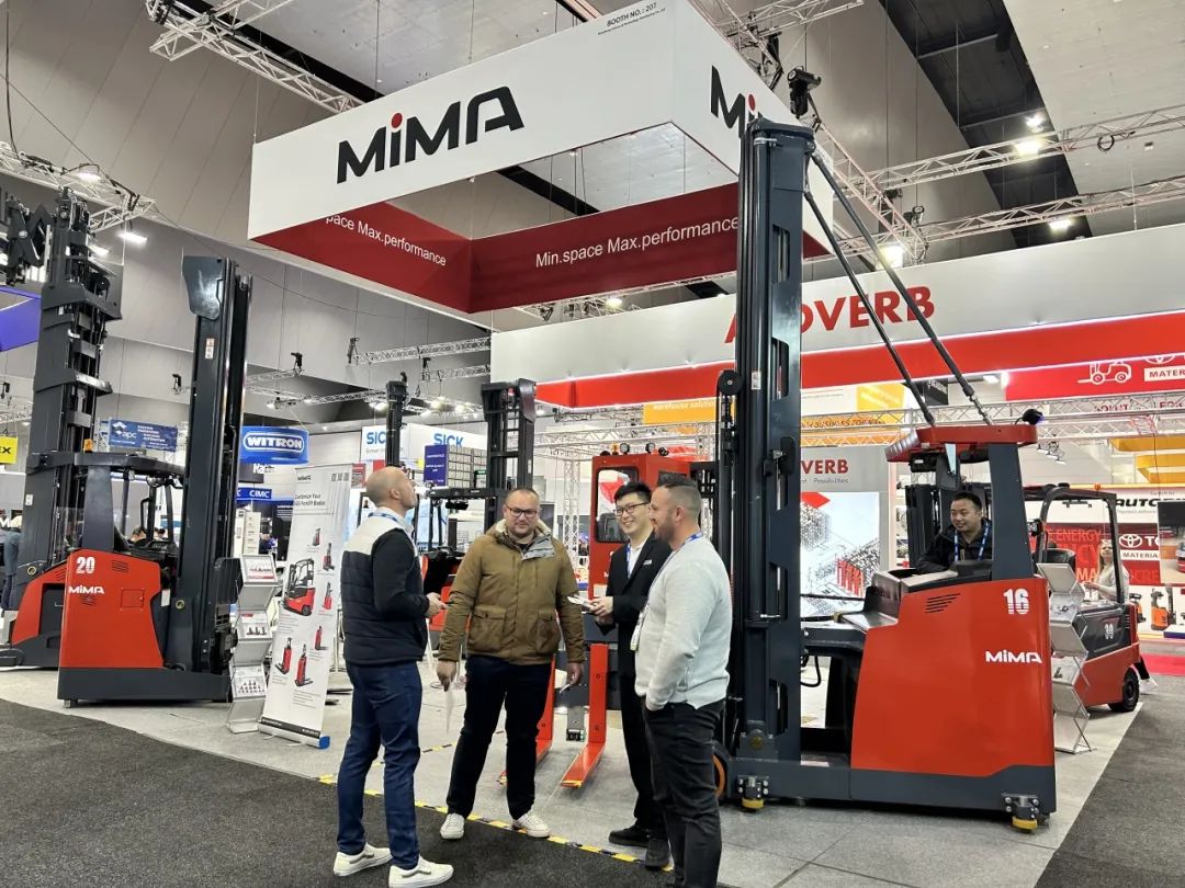在此次盛会上,合肥搬易通(MiMA米玛)携带其窄巷道系列明星产品MCA16座驾式三向叉车、MQZ25全向叉车、MJ20铰接式叉车、MFE14双剪叉前移式叉车以及MFZ20座驾前移式叉车精彩亮相,收获了现场观众的大量关注。