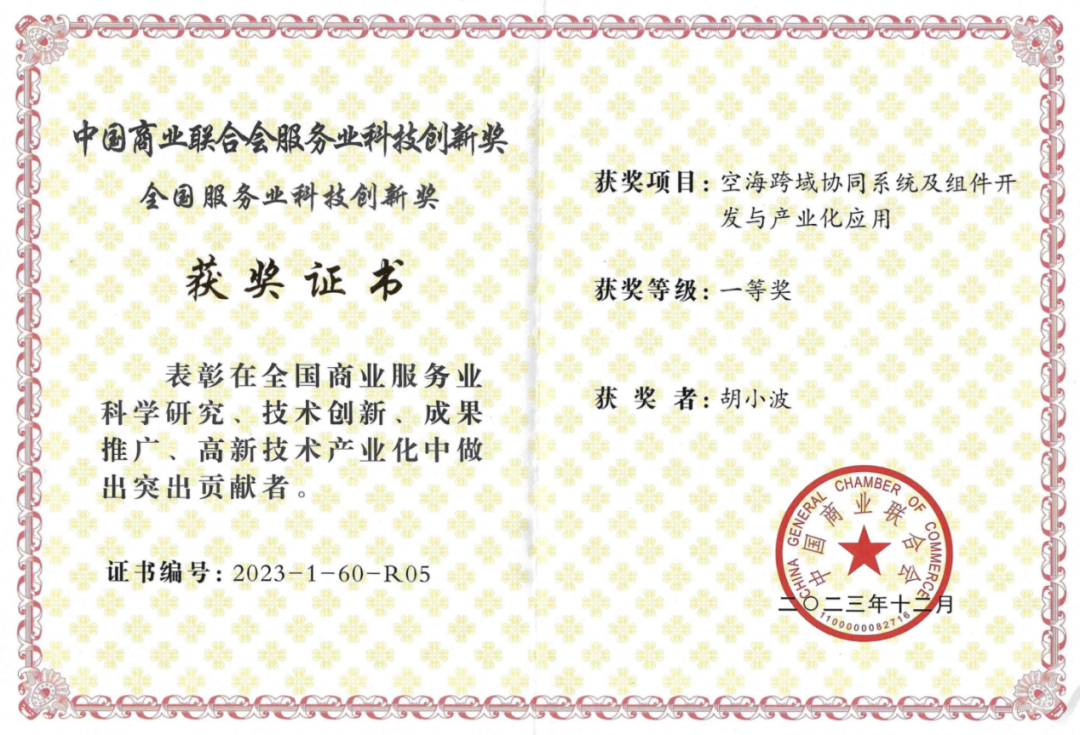 近日,由中国商业联合会主办的2024年全国商业科技质量大会在北京隆重召开。由上海交通大学及张卫东教授团队牵头,镭神智能及其创始人胡小波先生共同参与完成的“空海跨域协同系统及组件开发与产业化应用”成果项目,荣获了中国商业联合会颁发的服务业科技创新奖一等奖。