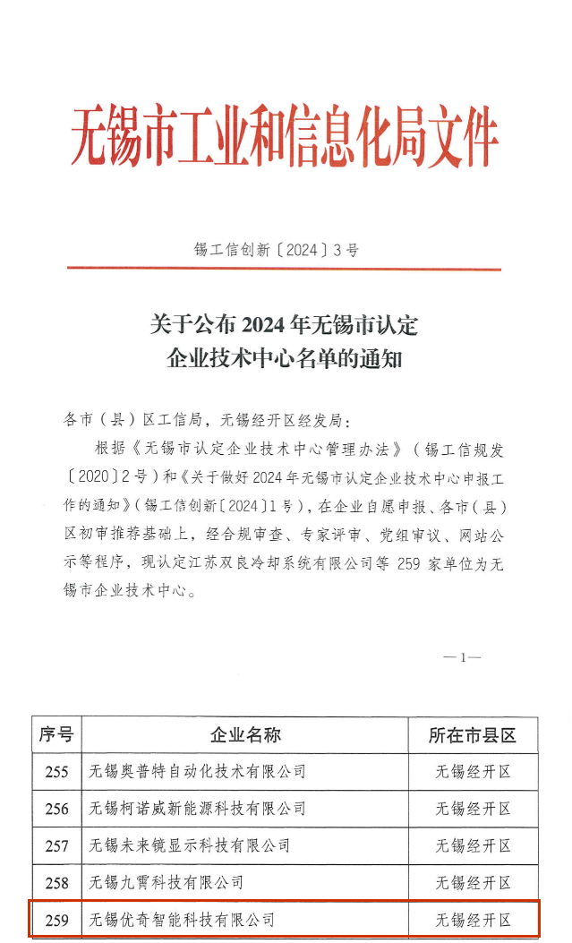 近日,UQI优奇成功获批由市工信局和市科技局分别评定的无锡市企业技术中心和无锡市智能搬运机器人工程技术研究中心。