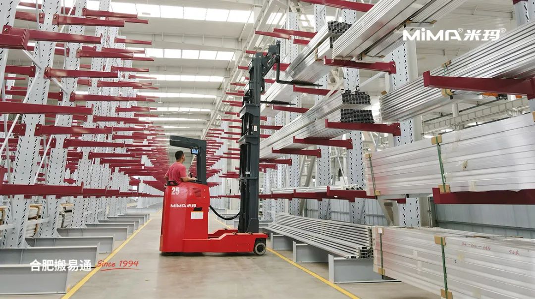 2、为了满足长重物料的灵活搬运需求,建议客户采购并使用MiMA米玛窄体全向叉车MQ25,这款叉车额定载荷2.5吨,拥有多种行驶模式,侧行通道更小,能够完美适配窄巷道作业环境。