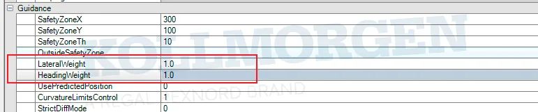 VAD中有两个参数:LaterWeight和HeadingWeight,其会影响到车辆在纠偏时的强度,数值越大代表纠偏力度越强。如果将数值改小,AGV/AMR纠偏的频次也会随之减少,车体左右摆动的情况将得以改善。但应注意,设置过小的数值,会导致纠偏不明显,进而更容易触发Outside Safety Zone,因此需要综合考虑。