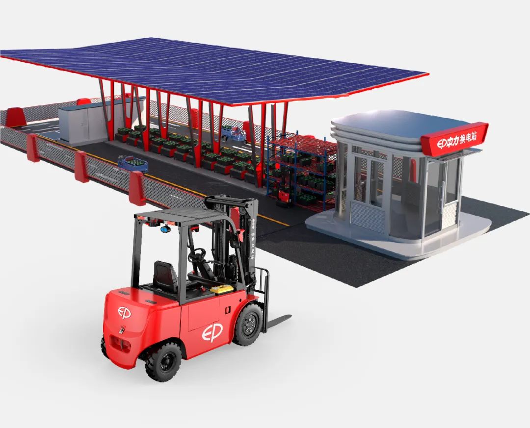 中力换电站解决方案成功落地山东某物流园区,众多X4手提换电锂电叉车应用于档口商户,出色解决货物装卸、搬运及堆垛等。