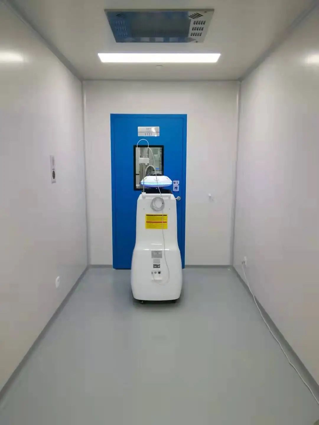 客户需求对无菌间进行空间灭菌处理。其总面积为166平方,450立方,共采用1台AGV-SD6进行空间移动式灭菌处理,经验证达到杀灭对数值≥6的杀灭效果。