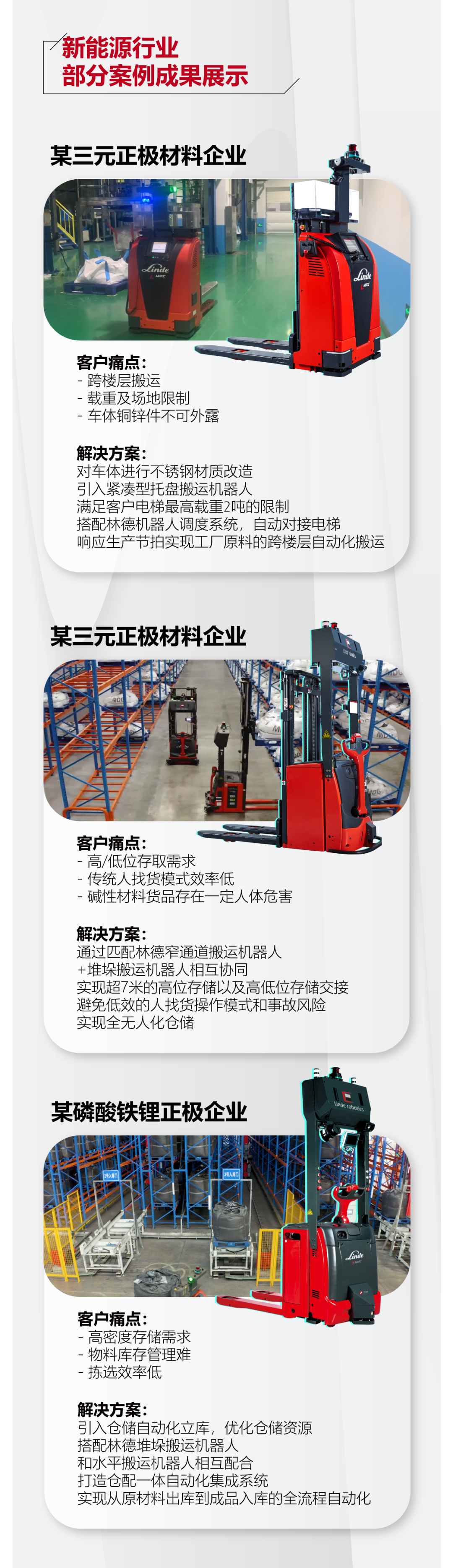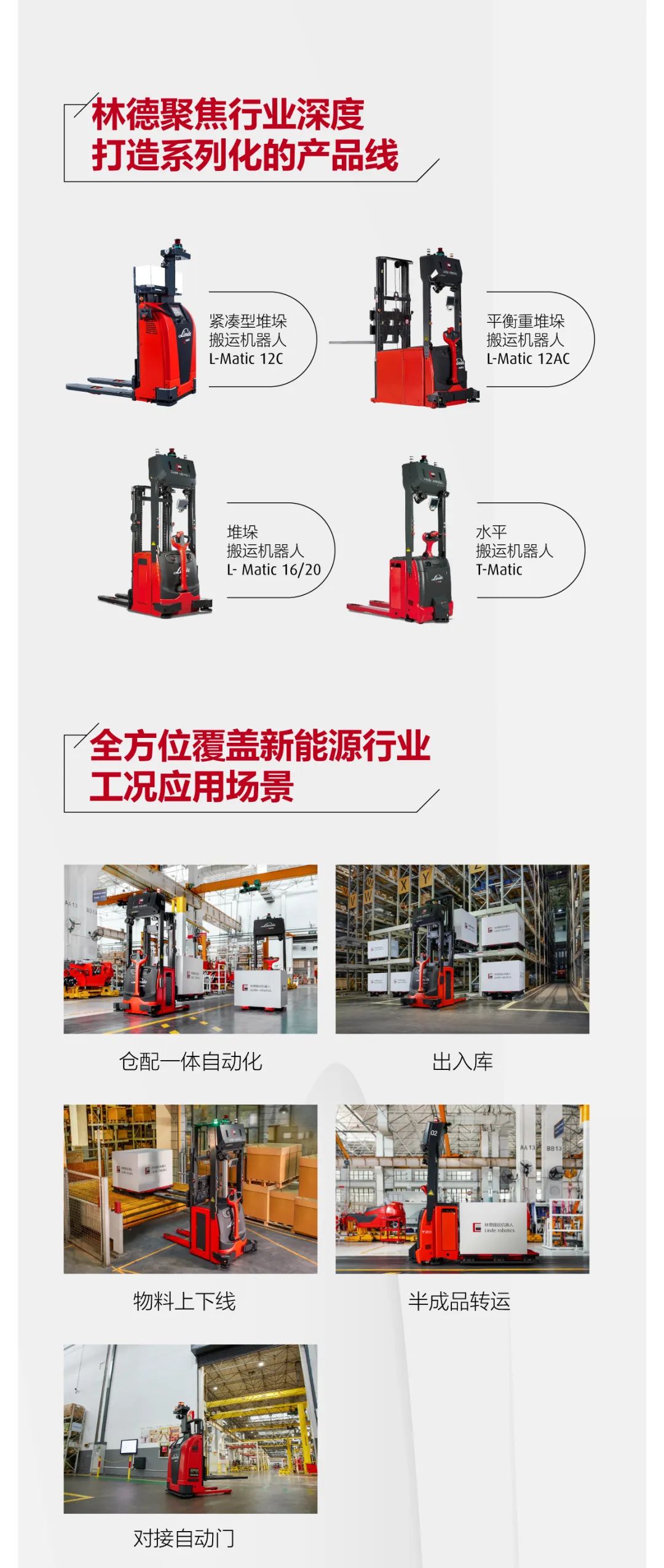 多年来林德(中国)秉承用科技创造物流高效生产的经营理念,始终坚持以用户为导向,根据用户实际应用场景量身打造物超所值的产品、服务及解决方案,特别是在新能源、自动化及数字化这些新兴领域,陆续推出了锂电、氢燃料电池,AGV自动搬运机器人,数字化车队管理系统等新技术、新产品,实现“从单点设备到万物互联”、“从产品到硬件+数字化/自动化+应用场景”的转变,为用户提供丰富、专业的行业解决方案。