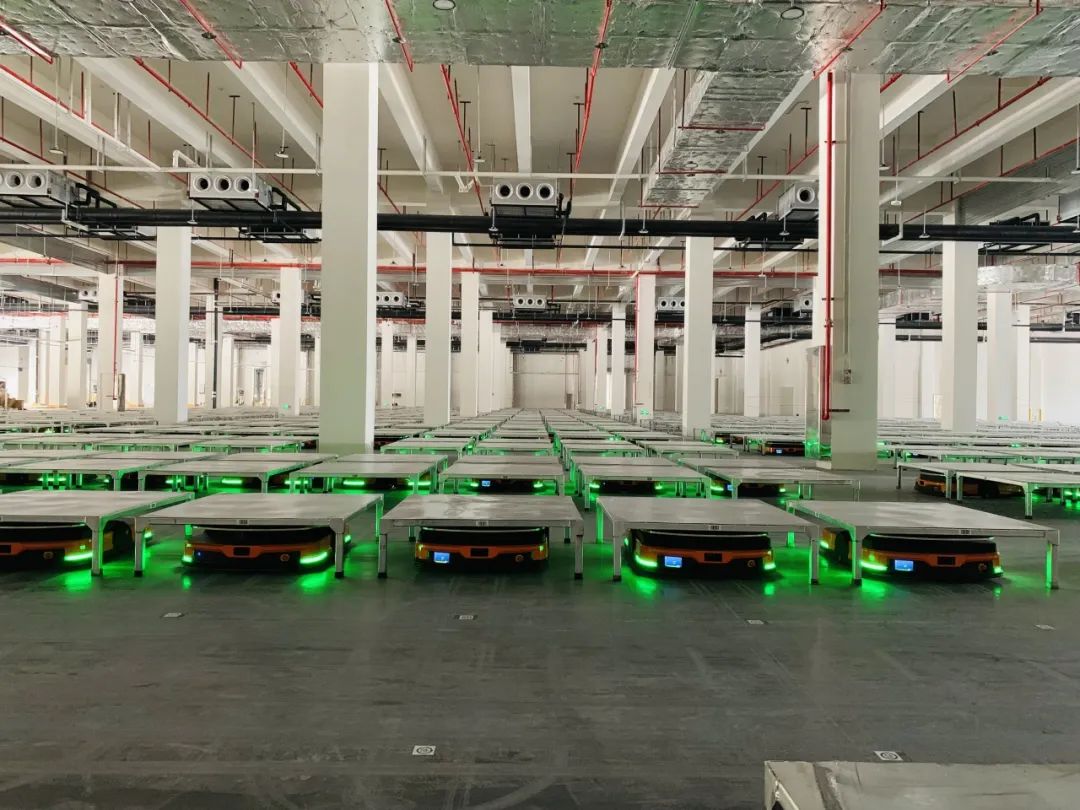 仓库可支持60-300家门店波次滚动作业,实现“分拣货到人”,即由原来的人在库区内找货式分拣转变为机器人将要分的货送到拣货员的面前,人不动货动,分拣差异降到0,人员无效库内行走降为0,仓库利用率提升300%,人员培训成本降低97%,树立了行业新标杆。
