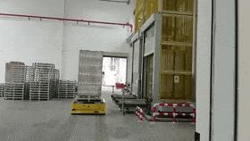 ●场内多车运行实现集群调度与高精度作业,AGV作为整厂货物转运工具,精准对接产线、集中打带中心、连廊输送线 、托盘库等装置,在AGV取货时设计视觉矫正车辆角度,从而满足大尺寸货物的精准叉取,完成多种货物的跨区搬运与出入库存放;