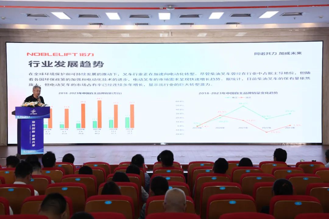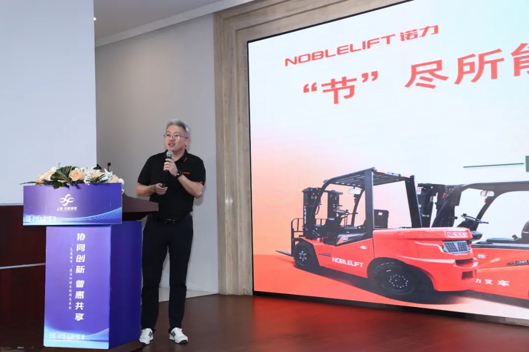 诺力市场总监冯安顺在会上发起了推进叉车“油换电”,助力“无废城市”建设的倡议。在“双碳”目标的引领与行业发展的趋势下,叉车行业正在加速向电动化转型。叉车“油换电”不仅能够实现降本增效、低碳环保,更是助力“无废城市”建设的关键举措。最后他向与会者介绍分享了诺力电动叉车安静节能、性能高效等优势,以及在物料搬运实际应用中的优质解决方案,展现了诺力扎实深厚的绿色智能技术。