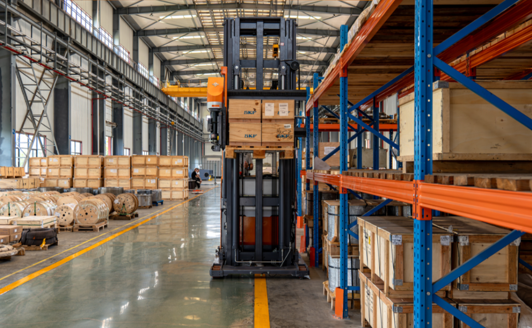 载荷1.2T的人下行三向叉车,最大起升高度7.5m,具备强大的高密度存储优势。待全部货架安装完成后,相比此前凭借堆高车人为堆高,预计能够提升一倍以上的仓储利用率。