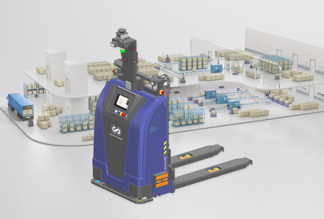 适用于场内原材料、半成品和成品在不同的工位或仓库之间进行搬运,灵活运用于极窄巷道、地堆库作业环境,自主纠偏,对接准确率高,具备托盘姿态识别、作业安全检测等功能,大大减少了人工搬运的工作量和错误率。